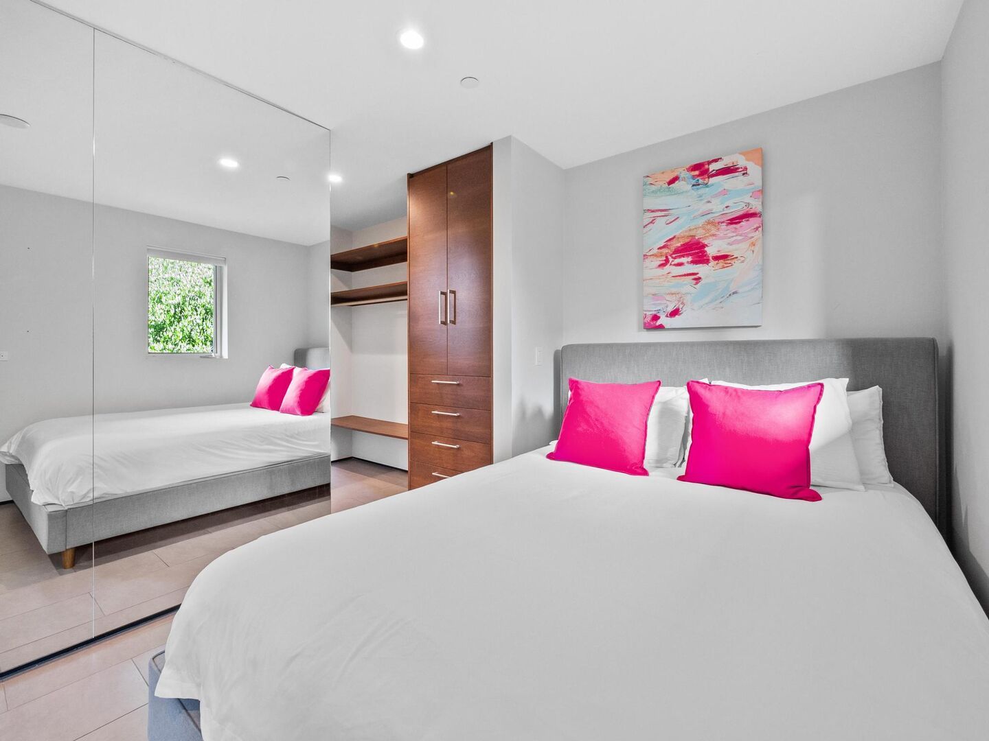 All bedrooms are en-suite, offering privacy and comfort. An oversized home office with a pull-out sofa bed provides extra sleeping space or a quiet work retreat. Whether you’re lounging poolside, gathering around the fire pit at sunset, or enjoying fine dining just steps away, this home is the ultimate Solana Beach escape.